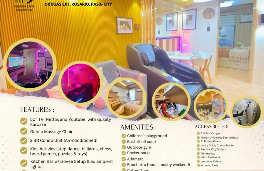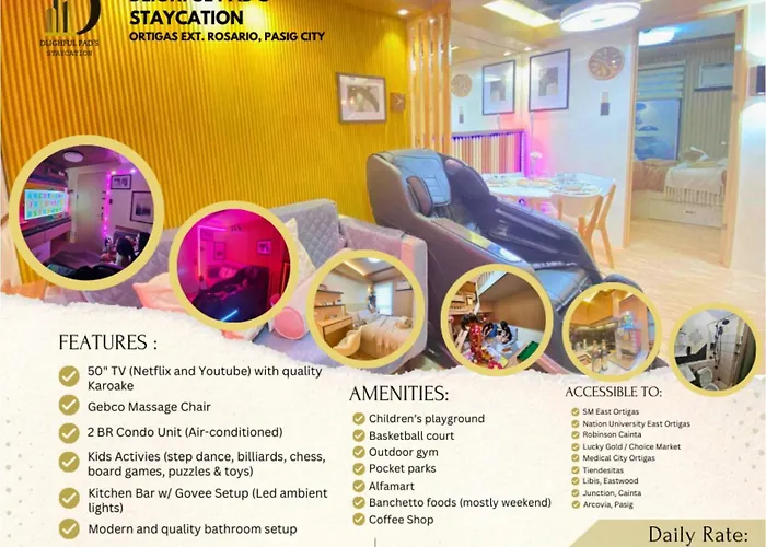 Pasig City Historic House Museum is a few moments from the apartment, while Choice Market Ortigas bus station is 400 metres away. Approximately 6 km from the 30 m² Dlighful Pad'S Massagechair Freeparking Bar Park Garden apartment you will find the Art in Island. The Pinto Art Museum is situated about 15 minutes' drive from the apartment.