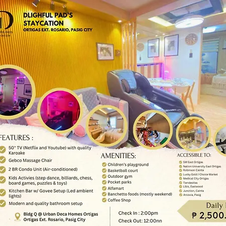 Situated nearly a 5-minute walk from Basketball Court, the 1-room Dlighful Pad'S Massagechair Freeparking Bar Park Garden Manila apartment offers guests easy access to various tourist attractions nearby. An array of activities, including billiards, can be enjoyed in the area.
